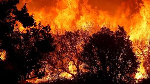 E o fogo subia muito, e ao mesmo tempo se alastrava interrompendo a estrada, causando um extenso rastro de destruição, assustador.